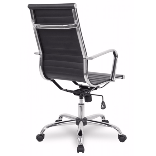 Механизм качания с регулировкой под вес и фиксацией в вертикальном положении Регулировка высоты газлифт Каркас металлический хромированный Подлокотники хромированные без накладок Материал обивки: кожа с полиуретановым покрытием
