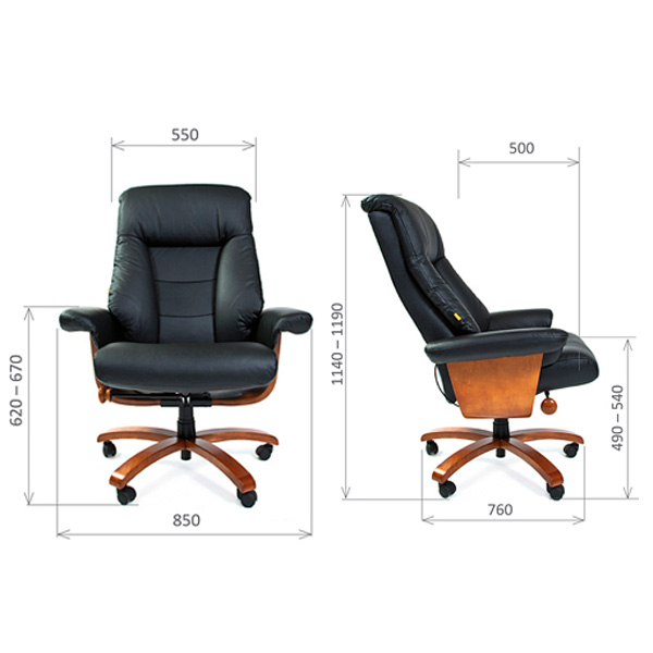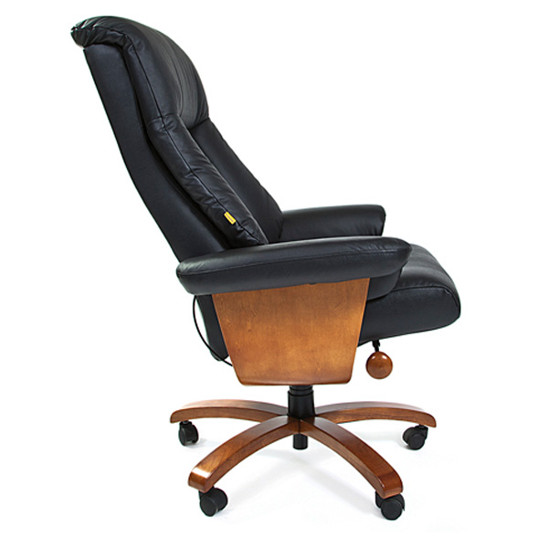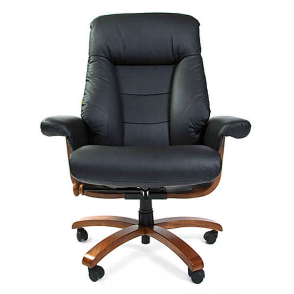 Подлокотники: Деревянные с мягкими накладками, обитыми натуральной кожей. Механизм качания: Механизм трансформации с фиксацией в любом положении. Регулировка кресла по высоте. Крестовина: Металлическая с деревянными накладками. Газпатрон: 4 класса по стандарту Germany DIN 4550, Ролики: Стандарт BIFMA 5,1 (США). Диаметр штока 11 мм., Каркас: Немонолитный. Набивка: Вспененный полиуретан плотностью 22-25 кг/куб.м. *Обивка кресла и подлокотников: рабочие и лицевые части выполнены из натуральной кожи, боковые и задние части ? из экокожи.