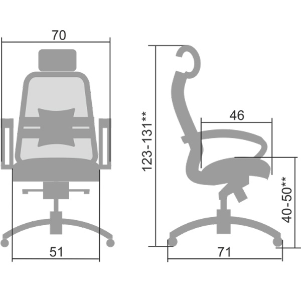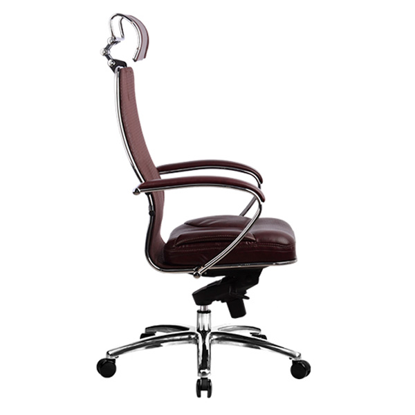 Отличие от других моделей серии Samurai: - укороченная натяжная сетчатая спинка со съемным 3D подголовником, - мягкое объемное сиденье из износостойкого перфорированного материала NewLeather*, - стальные подлокотники с мягкой накладкой из износостойкого материала NewLeather*. Преимущества: Абсолютно эргономичная форма спинки соответствует анатомической форме тела человека, Новая эргономичная форма спинки, помимо улучшения эргономических свойств, придает креслу устойчивость при максимальном отклонении. Двухзонная регулировка подпора поясницы обеспечивает идеальную поддержку спины независимо от комплекции сидящего, Сверхпрочный стальной каркас спинки и сиденья, покрытый зеркальным хромом, Гарантия 10 лет: на сетчатую ткань, армированную арамидным волокном и на стальной каркас, Синхромеханизм качания MULTIBLOCK, благодаря раздельному синхронному отклонению спинки и сиденья, позволяет телу периодически разгибаться, что улучшает кровоток и разминает мышцы спины, Возможность фиксации кресла в любом положении отклонения, Смещенный вперед центр качания позволяет стопам сидящего, при отклонении кресла, оставаться на полу, сосуды не пережимаются - сохраняется ощущение легкости в ногах, Регулировка глубины сиденья с помощью специального слайдера, обеспечивает эргономически правильную посадку пользователя в кресле, создавая дополнительный комфорт и удобство. Предусмотрена возможность фиксации глубины сиденья в пяти позициях. Пятилучье зеркальное литое с противооткатными полиуретановыми роликами, Противооткатные полиуретановые ролики обеспечивают дополнительную безопасность эксплуатации кресла: без нагрузки - предотвращают случайное перемещение кресла, при сидении - позволяют легко перемещаться. Ролики долговечные, бесшумные, не оставляют следов и царапин на полу, увеличенного диаметра (60 мм), Подголовник: Съемный 3D подголовник из перфорированного износостойкого материала NewLeather*, обеспечивает идеальную поддержку головы в любом положении. Регулируется по высоте, глубине, углу наклона. Каркас подголовника: стальной, покрытый зеркальным хромом, Подлокотники: стальные, покрытые зеркальным хромом, с мягкими накладками из износостойкого материала NewLeather*, Мягкое объемное сиденье обеспечивает дополнительный комфорт и ощущение мягкости кожаного дивана, Материалы обивки спинки: сверхпрочная сетчатая ткань, армированная арамидным волокном, Материалы обивки сиденья: перфорированный износостойкий материал NewLeather* , Сетчатая ткань, армированная высокопрочным арамидным волокном, позволяет Вашему телу свободно ?дышать?, сохраняя температурный баланс, исключая любые зоны перегрева в местах соприкосновения. Полимерная плетеная ткань с невероятной прочностью и износостойкостью. **Высота сиденья в верхнем и нижнем положении может быть изменена, в зависимости от модели применяемого газ-лифта.