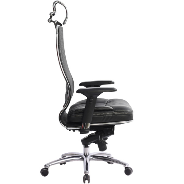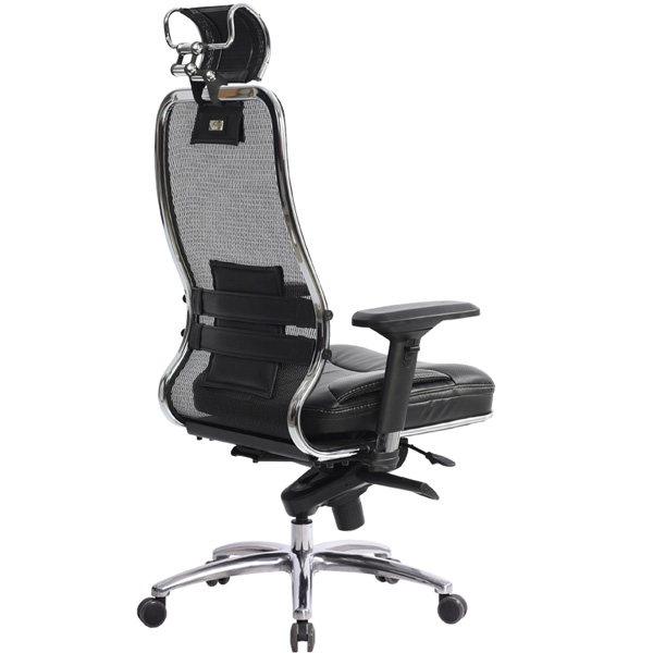 Отличие от других моделей серии Samurai: - укороченная натяжная сетчатая спинка со съемным 3D подголовником, - мягкое объемное сиденье из износостойкого перфорированного материала NewLeather*, - регулируемые 4D подлокотники. Преимущества: Абсолютно эргономичная форма спинки соответствует анатомической форме тела человека, Новая эргономичная форма спинки, помимо улучшения эргономических свойств, придает креслу устойчивость при максимальном отклонении. Двухзонная регулировка подпора поясницы обеспечивает идеальную поддержку спины независимо от комплекции сидящего, Сверхпрочный стальной каркас спинки и сиденья, покрытый зеркальным хромом, Гарантия 10 лет: на сетчатую ткань, армированную арамидным волокном и на стальной каркас, Синхромеханизм качания MULTIBLOCK, благодаря раздельному синхронному отклонению спинки и сиденья, позволяет телу периодически разгибаться, что улучшает кровоток и разминает мышцы спины, Возможность фиксации кресла в любом положении отклонения, Смещенный вперед центр качания позволяет стопам сидящего, при отклонении кресла, оставаться на полу, сосуды не пережимаются - сохраняется ощущение легкости в ногах, Регулировка глубины сиденья с помощью специального слайдера, обеспечивает эргономически правильную посадку пользователя в кресле, создавая дополнительный комфорт и удобство. Предусмотрена возможность фиксации глубины сиденья в пяти позициях. Пятилучье зеркальное литое с противооткатными полиуретановыми роликами, Противооткатные полиуретановые ролики обеспечивают дополнительную безопасность эксплуатации кресла: без нагрузки - предотвращают случайное перемещение кресла, при сидении - позволяют легко перемещаться. Ролики долговечные, бесшумные, не оставляют следов и царапин на полу, увеличенного диаметра (60 мм), Подголовник: Съемный 3D подголовник из перфорированного износостойкого материала NewLeather*, обеспечивает идеальную поддержку головы в любом положении. Регулируется по высоте, глубине, углу наклона. Каркас подголовника: стальной, покрытый зеркальным хромом, Регулируемые 4D подлокотники настраиваются под индивидуальные особенности рабочего места пользователя, разгружают плечи и предплечья сидящего, регулируются по высоте, углу поворота, а также меняется расстояние между подлокотниками, *регулировка высоты *регулировка расстояния между подлокотниками *регулировка угла поворота *регулировка вперед-назад Мягкое объемное сиденье обеспечивает дополнительный комфорт и ощущение мягкости кожаного дивана, Материалы обивки спинки: сверхпрочная сетчатая ткань, армированная арамидным волокном, Материалы обивки сиденья: перфорированный износостойкий материал NewLeather*, Сетчатая ткань, армированная высокопрочным арамидным волокном, позволяет Вашему телу свободно ?дышать?, сохраняя температурный баланс, исключая любые зоны перегрева в местах соприкосновения. Полимерная плетеная ткань с невероятной прочностью и износостойкостью. **Высота сиденья в верхнем и нижнем положении может быть изменена, в зависимости от модели применяемого газ-лифта.