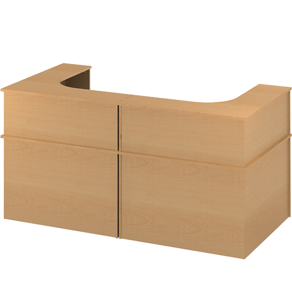 Стойка ресепшн округлая с нишами внутри, выполнена из ЛДСП, толщина столешницы 22 мм, боковые стенки ? 16 мм. Торцы деталей обработаны противоударной износостойкой кромочной лентой ПВХ толщиной 2 мм немецкого концерна ?REHAU?. Крёпежная и лицевая фурнитура производства России. Комплект состоит: ПСУ-11 Угловой элемент 120*120*118 см - 2 шт. * дополнительно можно заказать стяжки в стоимость не включено