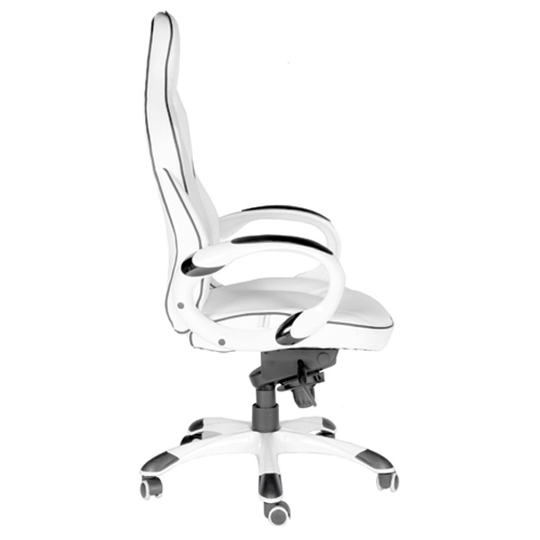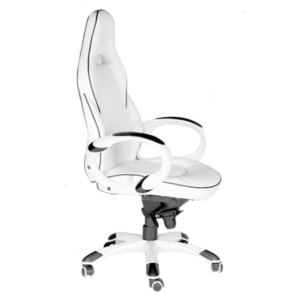 Дышащие вставки из перфорированной экокожи, декоративныйчерный кант из экокожи, прострочка декоративной белой нитью. Удобный большой подголовник. Мягкие накладки из экокожи на подлокотниках. Газ-патрон закрыт декоративным телескопическим кожухом. Крестовина необычной, оригинальной формы. Пластик с декоративными защитными накладками. Полиуретановые ролики уменьшают износ поверхности пола. Экокожаперфорированная экокожа. Механизм качания с возможностью фиксации в рабочем положении. Регулировка жесткости качания. Материал наполнения ППУ. Цвет обивки: белая экокожа черная строчка