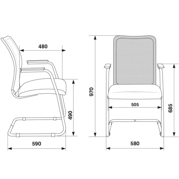 Каркас металлический, разборный Пластиковые накладки на подлокотники Цвет полозьев: хром зеркальный