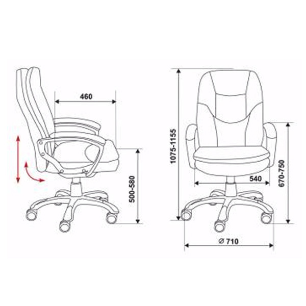 Конструкция: Механизм качания с регулировкой под вес и фиксацией в вертикальном положении Регулировка высоты (газлифт) Подлокотники с мягкими накладками