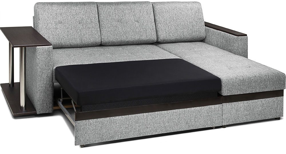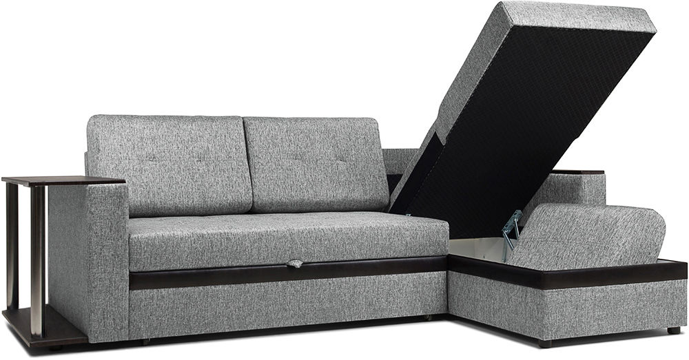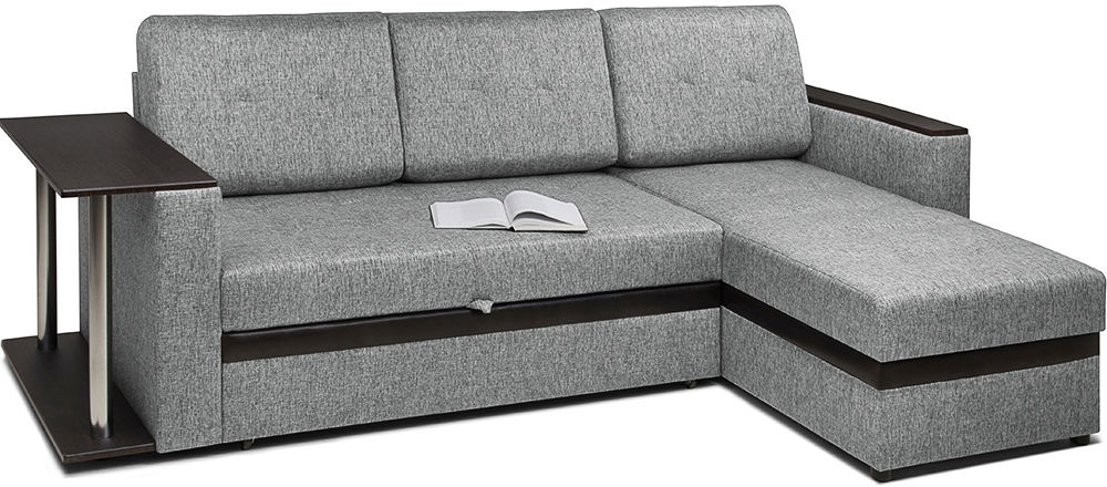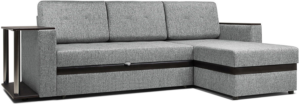 Выразительная. Лаконичная. С собственным характером. Все это угловая Атланта, универсальная модель для современных интерьеров. Диван пользуется популярностью не только благодаря своей внешности. Удобная посадка, мягкие набивные подушки-спинки, функциональный столик вместо подлокотника, полноценное спальное место для двоих выбор в пользу Атланты очевиден!