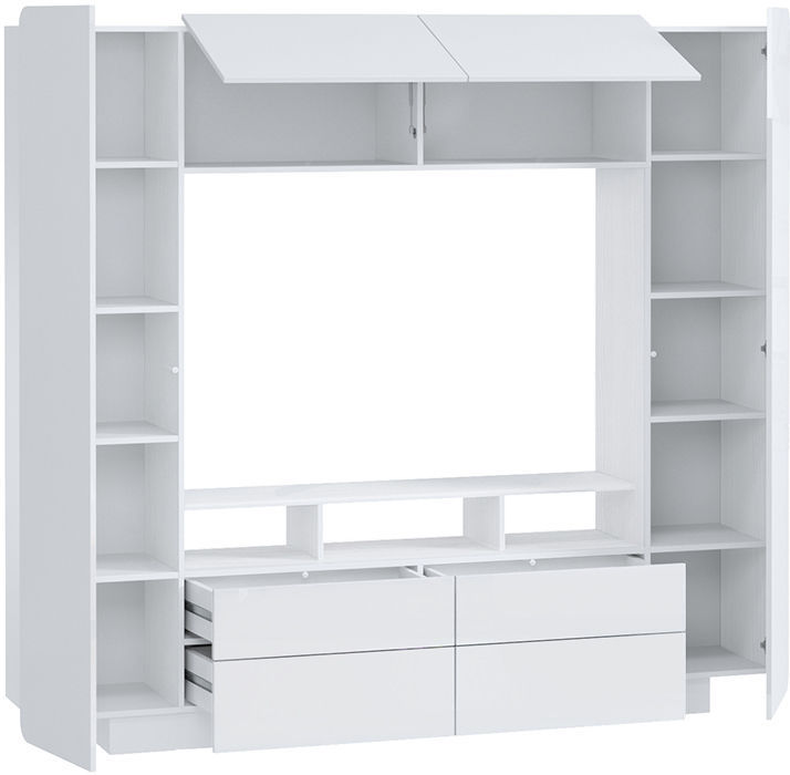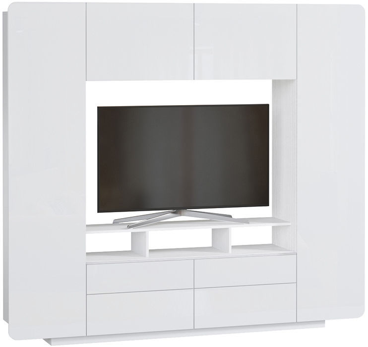Ультрасовременная, технологичная, невероятно стильная все это стенка Купертино с глянцевыми фасадами. Ее футуристический дизайн преобразит любую гостиную! Просторная ниша под ТВ позволяет повесить экран диагональю до 152 см, а многочисленные ящики и отсеки скрыть от посторонних глаз множество вещей.