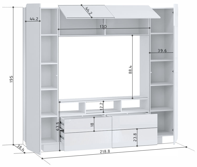 Размеры Ширина 219 см Глубина 39 см Высота 195 см