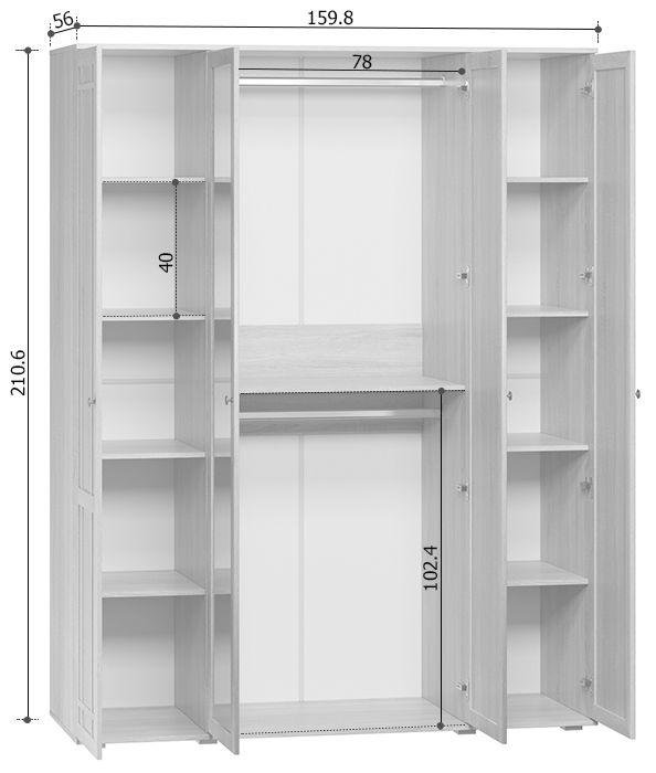 Размеры Ширина 160 см Глубина 56 см Высота 211 см