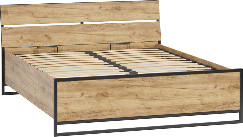 Спальня Лофт мебель с характером! Правильные прямоугольные формы и своеобразное сочетание текстуры древесины и металлических элементов выглядит внушительно и брутально. Комплект состоит из кровати и двух прикроватных тумб. Широкий выбор модулей позволяет подобрать композицию для помещения любой конфигурации и площади. Все модули гостиной выполнены в едином стиле и формируют гармоничный современный интерьер. Каркас изделий выполнен из металлического профиля с сечением 25 х 25 мм.