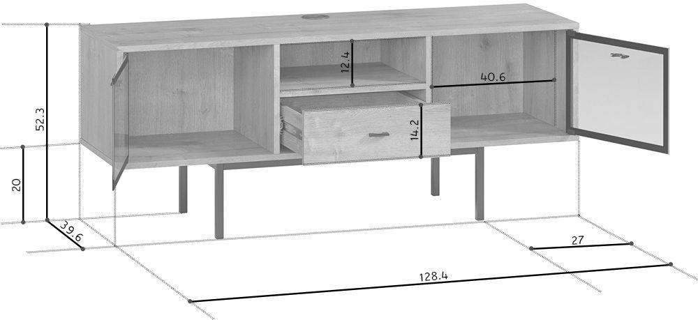 Размеры Ширина 129 см Глубина 40 см Высота 53 см