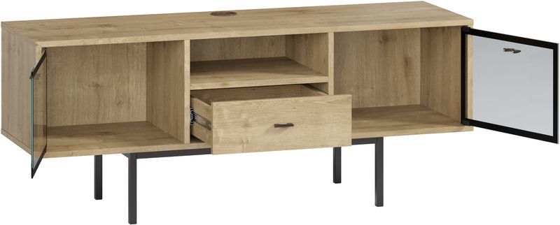 Широкая тумба под телевизор серии Бруклин, выполненная в стиле лофт, будет уместна в любой современной гостиной. Несколько отделений позволяют удобно хранить аппаратуру и необходимые аксессуары.