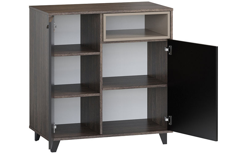 Стильный комод модель из яркой коллекции Концепт. Дизайнеры использовали беспроигрышную комбинацию цветов и фактур: корпус выполнен в красивом оттенке Венге Винтаж, а дополняют его гладкие матовые фасады и контрастная вставка. Сдержанный дизайн модели подчеркнут длинными узкими ручками из массива дерева.