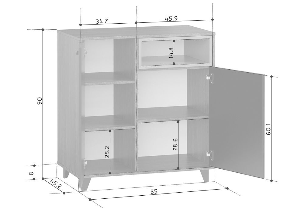 Размеры Ширина 85 см Глубина 46 см Высота 90 см