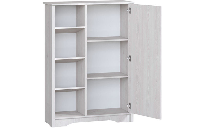 Практичная обувница с тремя открытыми и двумя закрытыми полками систематизирует хранение ботинок, туфель и сапог в прихожей. Небольшая глубина позволяет вписать конструкцию даже в узкий коридор, а современный дизайн украсит входную зону!