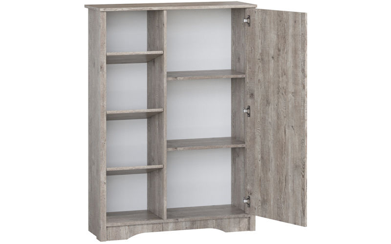 Практичная обувница с тремя открытыми и двумя закрытыми полками систематизирует хранение ботинок, туфель и сапог в прихожей. Небольшая глубина позволяет вписать конструкцию даже в узкий коридор, а современный дизайн украсит входную зону!