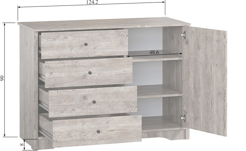 Стильный минимализм комода Рейкьявик несет в себе нотки стиля лофт. Нейтральный оттенок и классическая фактура натурального дерева делают модель основательной и одновременно изящной. Комод гармонично впишется в любую комнату: спальню, прихожую, гостиную, а в комплекте с другими элементами серии Рейкьявик будет выглядеть очень стильно.