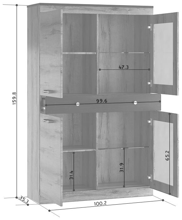 Размеры Ширина 101 см Глубина 36 см Высота 160 см