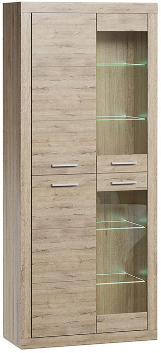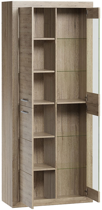 Высокая витрина Оскар дополнит обстановку гостиной или столовой. Минималистичная модель отличается лаконичным дизайном, строгостью форм, выразительным контрастом древесной фактуры и стекла.