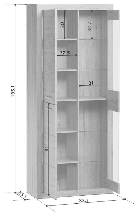 Размеры Ширина 83 см Глубина 36 см Высота 196 см