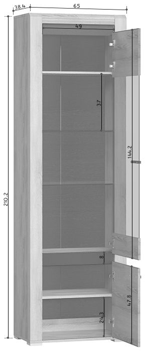 Размеры Ширина 65 см Глубина 39 см Высота 211 см