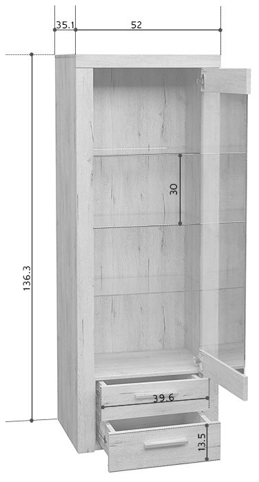 Размеры Ширина 52 см Глубина 36 см Высота 137 см