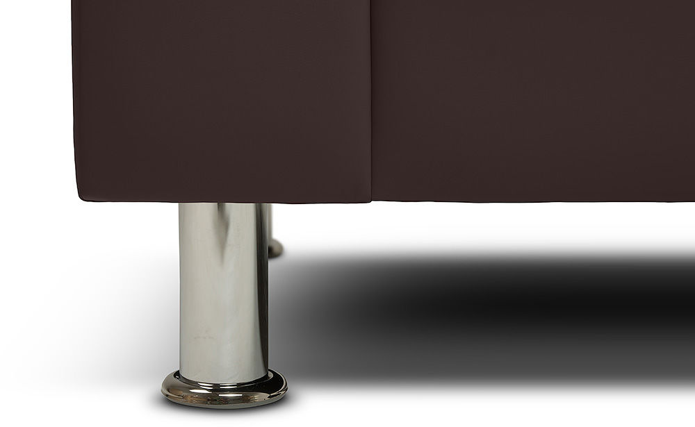 Диван Эрвин привлекает своей сдержанной респектабельностью. При своих компактных габаритах конструкция предельно удобная. За эргономичную посадку отвечают отведенная назад спинка и глубокое сиденье с упругим наполнителем. Гладкая обивка из однотонной экокожи с красивой фактурой выгодно оттенена блеском хромированных ножек.
