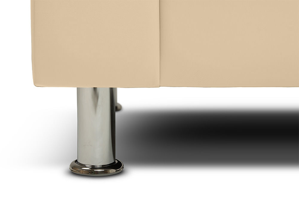 Диван Эрвин привлекает своей сдержанной респектабельностью. При своих компактных габаритах конструкция предельно удобная. За эргономичную посадку отвечают отведенная назад спинка и глубокое сиденье с упругим наполнителем. Гладкая обивка из однотонной экокожи с красивой фактурой выгодно оттенена блеском хромированных ножек.