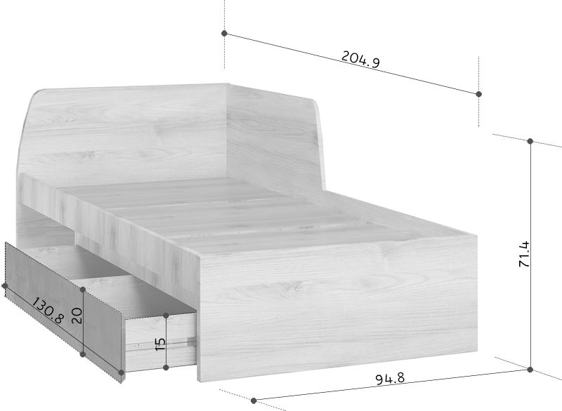 Размеры Длина 205 см Ширина 95 см Высота 72 см