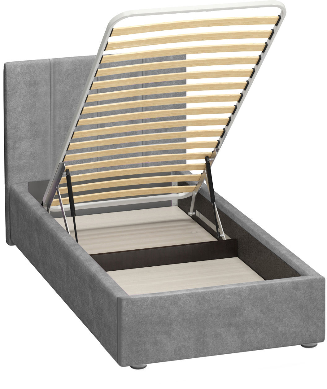 Прато универсальная кровать, которая легко адаптируется под интерьеры различных стилистик. Ее правильные прямоугольные формы и сдержанный оттенок обивки строги и одновременно изящны. Индивидуальность дизайну придают мягкие подушки изголовья. Кровать уже укомплектована ортопедическим основанием, а при желании может быть оснащена подъемным механизмом.