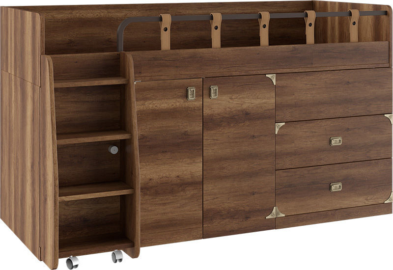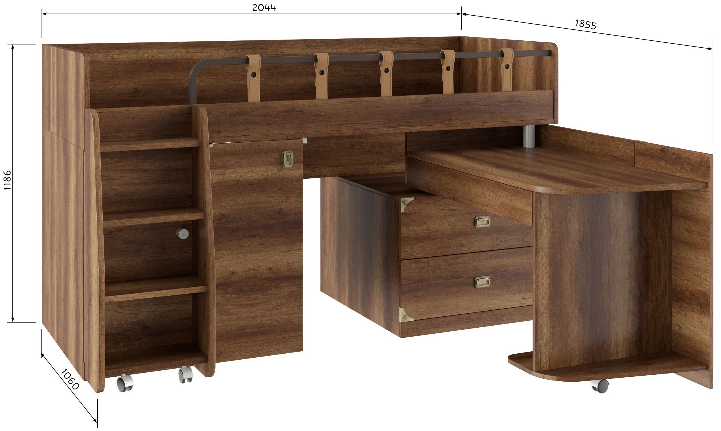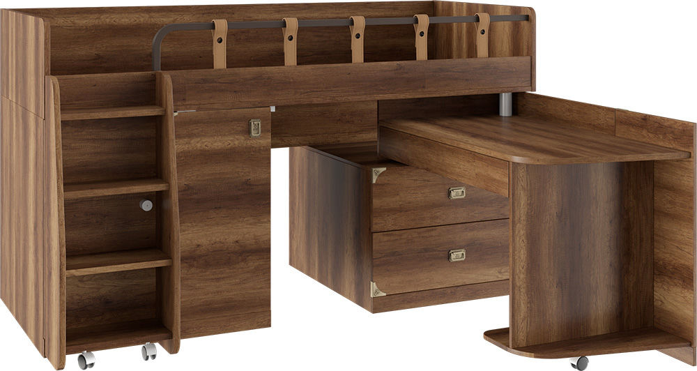 Спальное место, зона для игр, рабочий уголок, система хранения, и все это на 2 квадратных метрах&hellip, С кроватью из серии Навигатор мечта стала реальностью! Многофункциональная конструкция с выдвижным компьютерным столом и кроватью на втором этаже задействует пространство максимально рационально! Морская тематика и стильный металлический декор украсят любую комнату! Глубина в сложенном виде: 83.7 см., с лестницей 106 см. Глубина в разложенном виде: 185.5 см.