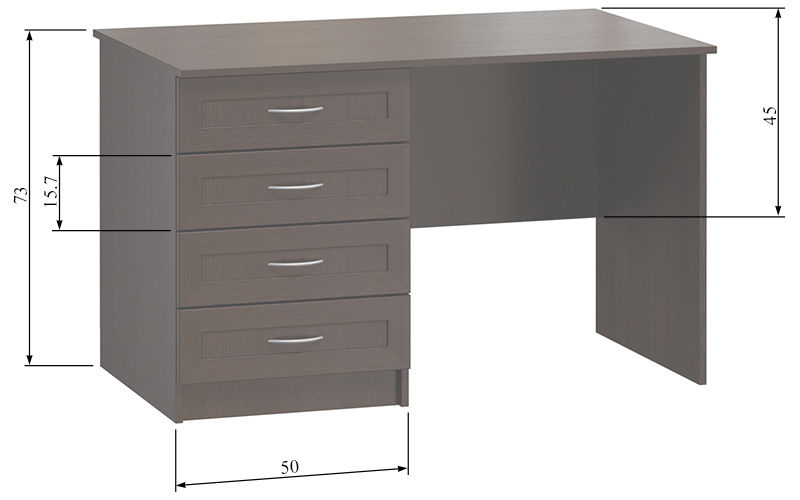 Функциональный письменный стол не просто комбинация эргономичного рабочего места и вместительной системы хранения, но и отличное интерьерное решение для организации рабочей зоны. Его преимущество широкая столешница, где удобно разместятся книги, документы, письменные принадлежности, а при необходимости монитор компьютера или ноутбук. В тумбе с выдвижными ящиками найдут свое место папки с бумагами и литература, которую вы используете не так часто.
