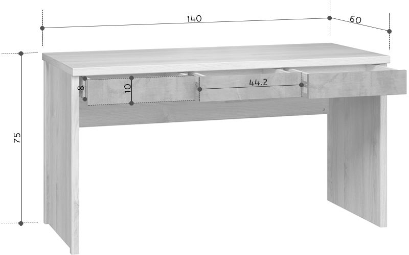 Размеры Ширина 140 см Глубина 60 см Высота 75 см