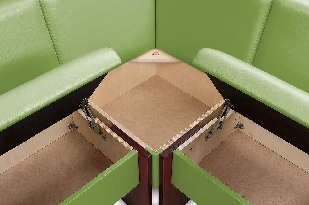 Строгость линий и лаконичность форм в сочетании с однотонной обивкой из искусственной кожи и низкими МДФ-подлокотниками все это кухонный уголок Бонн. Продуманная Г-образная конструкция, мягкое сиденье и слегка отклоненная назад спинка позволят с комфортом разместиться за обеденным столом не только членам семьи, но и гостям.