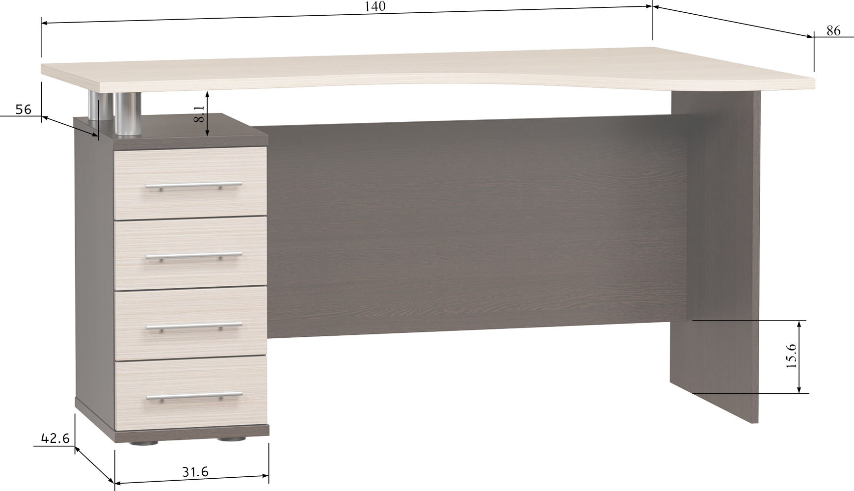 Письменный стол КСТ-104.1 Венге/Беленый дуб левый