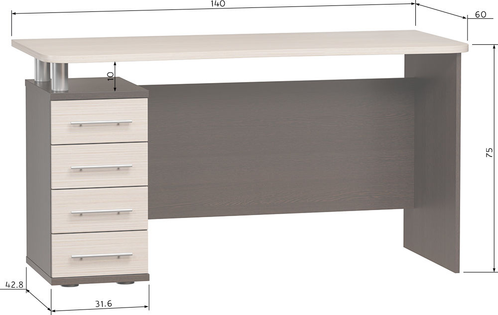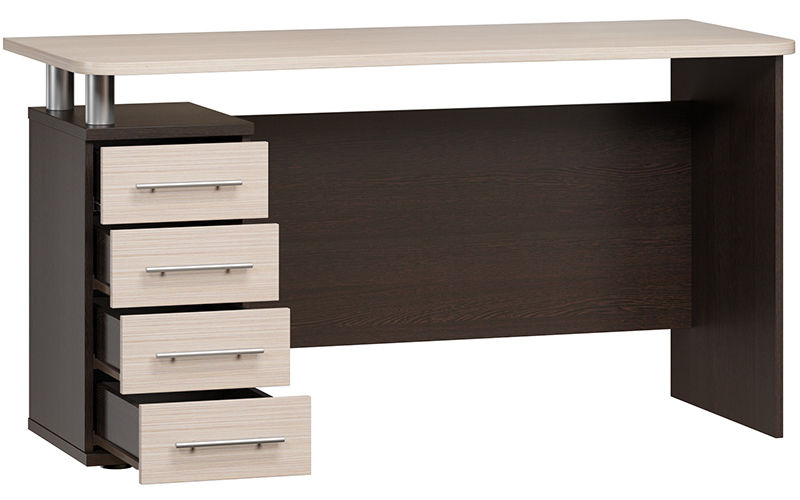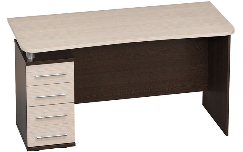 Письменный стол с продуманной конструкцией поможет сделать рабочее место функциональным и комфортабельным. В нем есть все самое необходимое: просторная столешница и вместительные выдвижные ящики для хранения письменных принадлежностей.