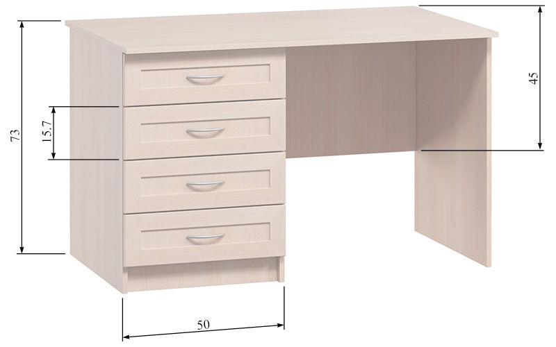 Функциональный письменный стол не просто комбинация эргономичного рабочего места и вместительной системы хранения, но и отличное интерьерное решение для организации рабочей зоны. Его преимущество широкая столешница, где удобно разместятся книги, документы, письменные принадлежности, а при необходимости монитор компьютера или ноутбук. В тумбе с выдвижными ящиками найдут свое место папки с бумагами и литература, которую вы используете не так часто.