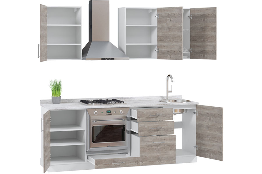 Обратите внимание! Мойка, бытовая техника и сушилка для посуды в комплект гарнитура не входят.