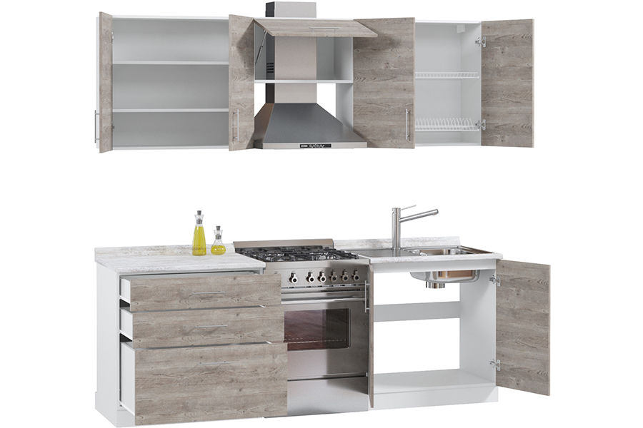 Обратите внимание! Мойка, бытовая техника и сушилка для посуды в комплект гарнитура не входят.