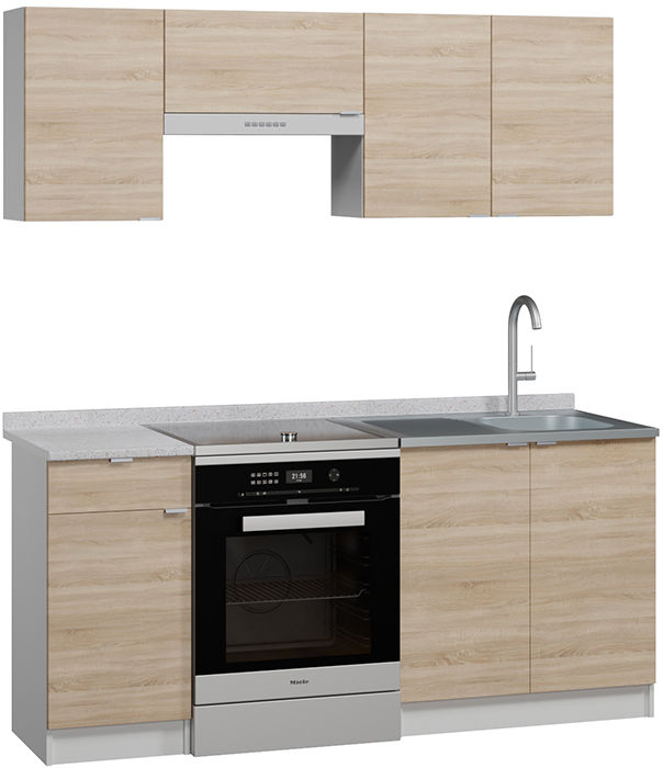 Модульная кухня Мия-3 с вместительными шкафами для хранения посуды, столовых приборов и аксессуаров, которые понадобятся для кулинарных творений. Все элементы не зависят друг от друга и могут быть установлены в любом порядке. Двери на шкафы и тумбу можно навешивать с любой стороны. Мебель сделана из ЛДСП 16 мм, края обработаны кромкой ПВХ 0,4 и 2 мм. В ящике используются роликовые направляющие. Ручки на фасадах металлические. Столешница ЛДСП с влагостойким прочным покрытием постформинг.