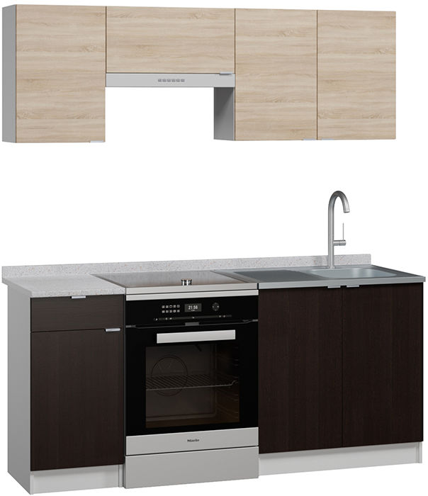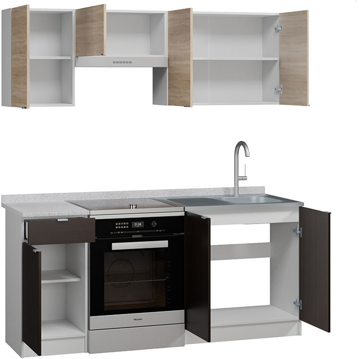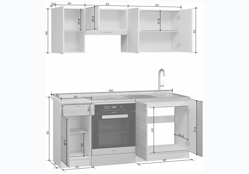 Кухонный гарнитур Мия-3 с вместительными шкафами для хранения посуды, столовых приборов и аксессуаров, которые понадобятся для кулинарных творений. Все элементы не зависят друг от друга и могут быть установлены в любом порядке. Двери на шкафы и тумбу можно навешивать с любой стороны. Мебель сделана из ЛДСП 16 мм, края обработаны кромкой ПВХ 0,4 и 2 мм. В ящике используются роликовые направляющие. Ручки на фасадах металлические. Столешница ЛДСП с влагостойким прочным покрытием постформинг.