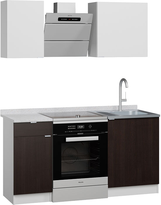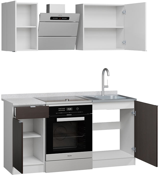 Кухонный гарнитур с большой рабочей поверхностью и вместительными шкафами для посуды и аксессуаров. Все элементы не зависят друг от друга и могут быть установлены в любом порядке. Двери на шкафы и тумбу можно навешивать с любой стороны. Мебель сделана из ЛДСП 16 мм, края обработаны кромкой ПВХ 0,4 и 2 мм. В ящике используются роликовые направляющие. Ручки на фасадах металлические. Столешница ЛДСП с влагостойким прочным покрытием постформинг.