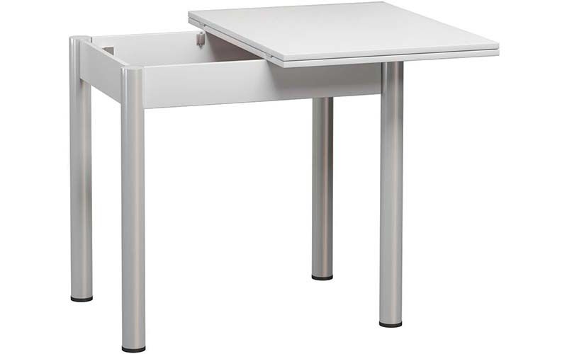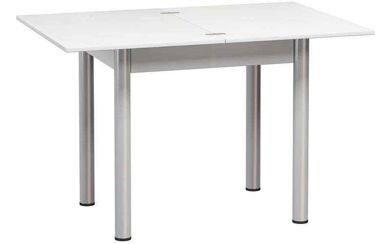 Аккуратный и эргономичный обеденный стол СО-1м выполнен в оттенке белый. Металлические ножки круглого сечения придают внешнему виду основательности. Две части столешницы соединены петлями, в собранном виде одна половина лежит на другой. Поверхность раскладывается с помощью поворотного механизма. Для трансформации нужно отодвинуть столешницу, повернуть на 90 градусов и раскрыть как книжку легко и удобно. Модель понравится гостеприимным хозяевам и отлично впишется в обстановку современной кухни.