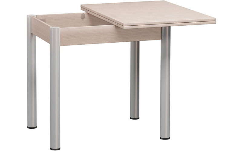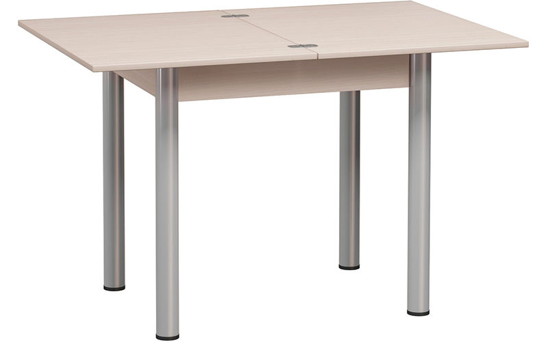 Аккуратный и эргономичный обеденный стол СО-1м выполнен в оттенке беленый дуб. Металлические ножки круглого сечения придают внешнему виду основательности. Две части столешницы соединены петлями, в собранном виде одна половина лежит на другой. Поверхность раскладывается с помощью поворотного механизма. Для трансформации нужно отодвинуть столешницу, повернуть на 90 градусов и раскрыть как книжку легко и удобно. Модель понравится гостеприимным хозяевам и отлично впишется в обстановку современной кухни.