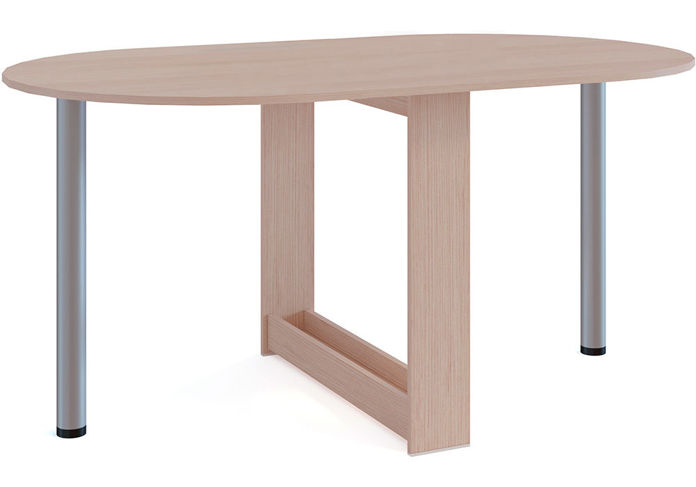 Небольшой овальный стол-книжка с откидной столешницей. Модель будет удобным элементом на небольшой кухне в квартире или в дачном домике. Отсутствие углов у столешницы снижает травмоопасность. При необходимости размеры столешницы можно увеличить, подняв крыло и прикрутив к нему ножку. В сложенном состоянии ножка хранится в специальной нише в основании стола. Ширина столешницы в разложенном состоянии 1548 мм, в сложенном 860 мм. Обратите внимание! Стол складывается только на половину. То есть вы не сможете сложить его в узкую тумбу и спрятать. Изделие изготавливается из ЛДСП толщиной 16 мм, края обработаны кромкой ПВХ 0,4 мм. Ножки металлические.