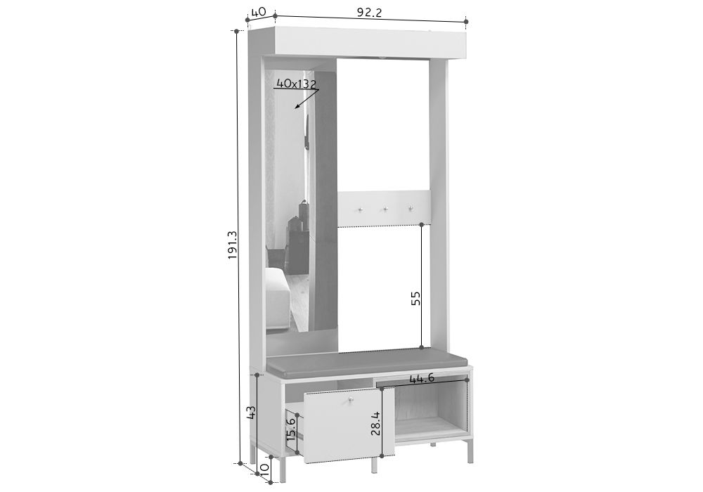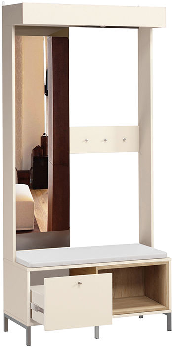 Прихожая Милтон отличное решение для небольшой входной зоны. Не смотря на небольшие габариты она сможет разместить всё необходимое: верхнюю одежду, головные уборы, обувь и различные аксессуары. Единая конструкция включает потайную штангу для одежды на плечиках, зеркало со скрытой подсветкой, открытую нишу, крючки для сумок и выдвижной ящик. Корпус и фасад модели выполнены из качественного ЛДСП, фурнитура металлическая. Ножки снабжены пластиковыми подпятниками, защищающими напольное покрытие от механических повреждений.