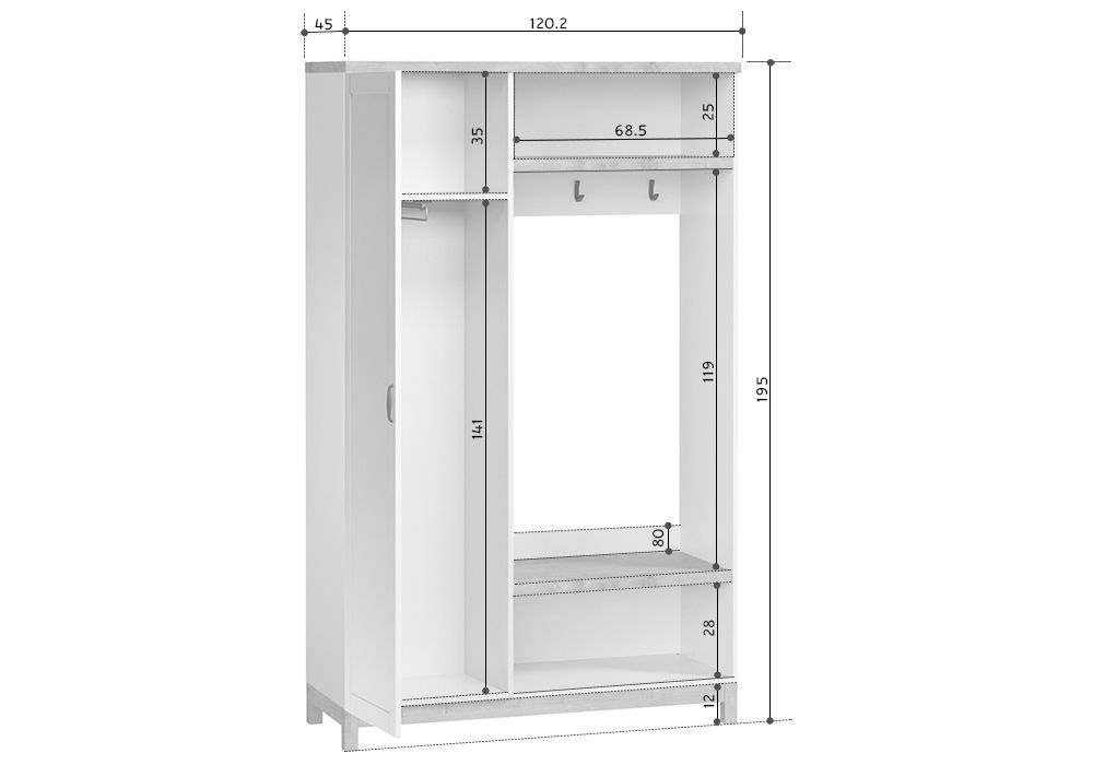 Размеры Ширина 121 см Глубина 45 см Высота 195 см