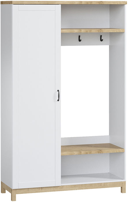 Прихожая Равенна поможет организовать функциональное хранение в небольшом коридоре. Визуальная легкость белых фасадов в сочетании с красивой текстурой древесины создаст ощущение уюта в современном интерьере.