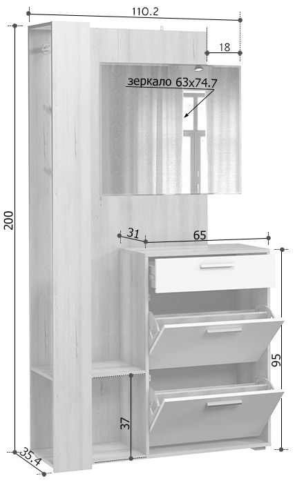 Размеры Ширина 111 см Глубина 36 см Высота 200 см