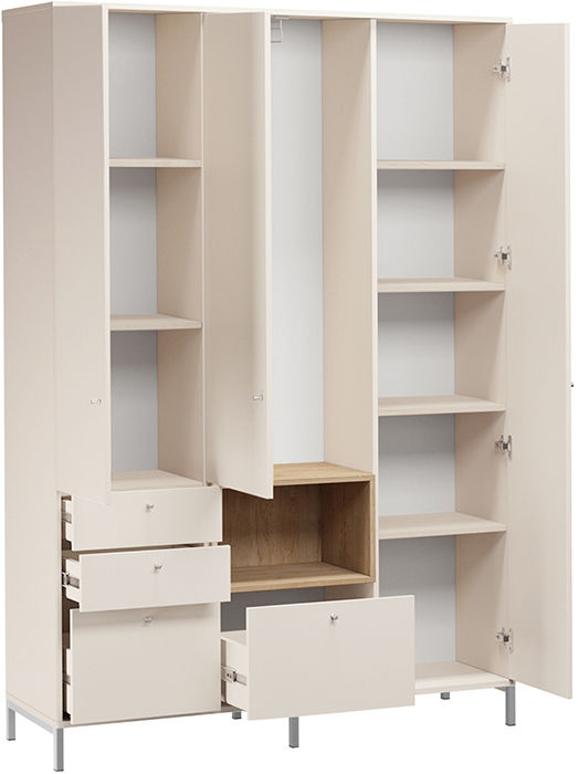 Элегантная модульная коллекция Милтон поможет разместить одежду, головные уборы и другие аксессуары на минимальной площади. Благодаря разнообразию модулей и их комбинаций легко создать уникальный интерьер, выдержанный в едином стиле. Базовый комплект включает распашной шкаф, комод и зеркало. Корпус и фасад прихожей произведены из прочного ЛДСП, фурнитура из металла. Выдвижные ящики укомплектованы шариковыми направляющими полного выдвижения. Ножки снабжены подпятниками, защищающими напольное покрытие.