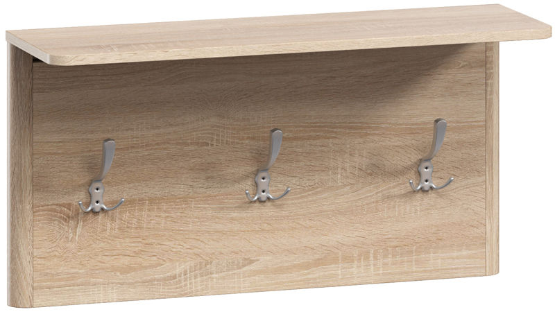Настенная вешалка из коллекции Форест будет незаменима в маленькой прихожей. Панель из ламинированной ДСП оснащена полкой для головных уборов и тремя крючками для верхней одежды. Держатели имеют практичную раздвоенную форму, что позволяет разместить больше вещей, а надежное крепление дает возможность повесить тяжелые зимние куртки и пальто.
